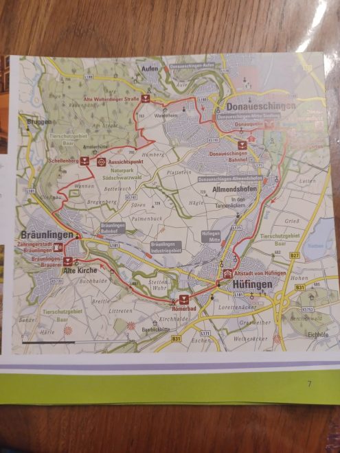 Wir wandern deshalb rund um Donaueschingen, Wanderroute siehe Foto: